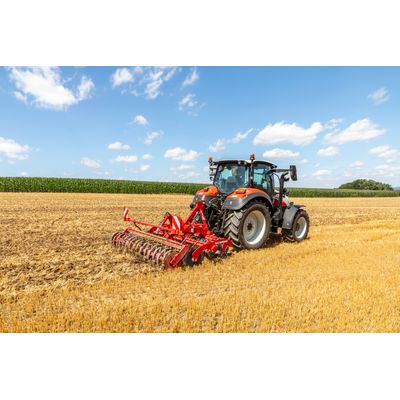 The HORSCH Joker CT is a compact disc harrow that is ideal for stubble cultivation, the incorporation of catch crops, seedbed preparation or the incorporation of organic fertilizer. The HORSCH Joker CT is a compact disc harrow available in 11.5` working width for 3-point hitch systems. It is designed for lighter tasks and smaller operations, providing a more compact solution for those who do not require the wider range and heavier build of the Joker MT. It stands out for its robust construction and easy handling. Its range of applications includes initial shallow stubble cultivation at depths of 2`` to 3``, seedbed preparation with a high proportion of fine soil, and the incorporation of organic fertilizers such as manure, slurry, or green manure.