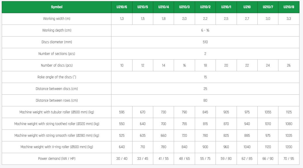 Bomet - Model Perseus U210/6, U210/5, U210/4, U210/3, U210/2 -Compact Disc Harrows (Mounted)