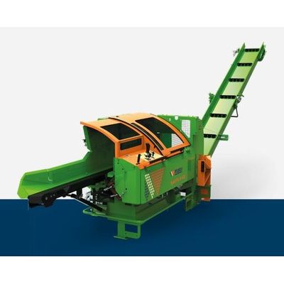 The split cutter SpaltFix K-415 with chain saw unit for cooperatives and firewood processors. The hydraulically driven log feed is easily controlled with a 1-hand joystick. The logs are cut to a length of 20-50 cm by a professional chain saw, the automatic timber rocker passes the cut-to-length log on to the pressure piece, which pushes it through the splitting knife. The result: 4, 6, 8 or 12* billets per work cycle. The integrated conveyor belt loads the firewood, or it is cleaned from splinters with an optional screen beforehand.