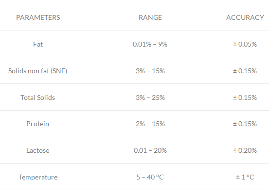 Milk-Lab Compact was developed in 2009 to perform on the spot, fast, cost free, raw milk testing. Designed for use in dairy farms, milk collection centers, milk collection trucks , small dairies, veterinary services. It is the smallest, automatic milk examiner ever built with high level of accuracy and repeatability that is inline with bench chemistry methods.