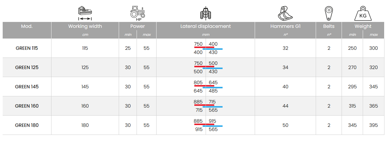 - 540 or 1000 rpm gearbox with double free wheel and through shaft
