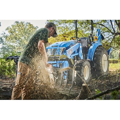 Loader Lift Capacity: 2,633 lbs. Hitch Lift: 2,755 lbs. Engine Horsepower: 57.0 hp. PTO Horsepower: 45.6 – 48.4 hp. 4WD (Front Wheel Mechanical Assist) – Go from 2WD to a 4WD with a simple move of a lever. Independent PTO – Easiest PTO to operate that can be turned on or off with a switch.  Standard 12×12 Synchro Shuttle – Change gears without having to stop. 12 forward / 12 reverse gear transmission provides more operating speeds than others in its class for superior control, precision and safe operations for virtually any application.