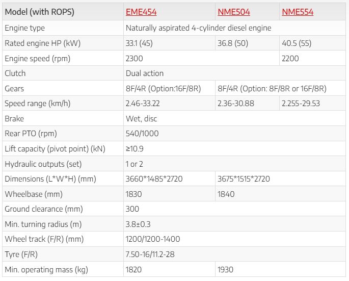 YTO - Model EME454/NME504/NME554 -Compact Utility Tractor, 45-55HP