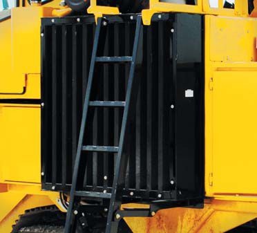Hydraulic reversing fan A reversible hydraulic motor-driven fan automatically changes direction to clear debris from the radiator screen. The operator can choose the frequency and duration of the reverse function, minimizing the possibility of engine overheating due to debris buildup on the radiator screen.