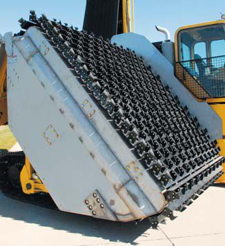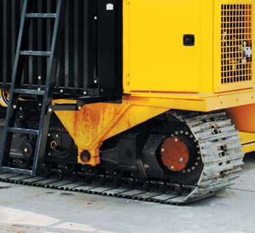 Two-speed ground drive Planetary track-drive system provides speeds from 6.5 fpm (2 m/min) in work mode to 3.2 mph (5.1 km/hr) in transport mode. Transport and cycle times are reduced in the high-speed range, while the low-speed range provides more control in wet, heavy material.