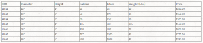 Our conical bottom tanks provide total fluid drainage and are ideal for artemia or brine shrimp culture. All cone bottom tanks come standard with a two inch female threaded PVC fitting. Cone pitches available: 20, 45, and 60 degrees. Sizes range from 12" to 60" in diameter and up to 10` tall.
