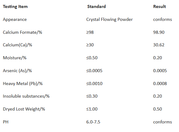- Calcium Formate: 98.9%