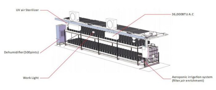 GrowSpec is a leading manufacturer and solution provider of indoor farming equipment, main products include container farm, vertical farming system, aeroponic system, LED grow lights. With rich experiences in manufacturing and strong power in the industry supply chain, we are able to provide one-stop solutions and turnkey services of indoor farms’ projects based on the actual needs of customers, to empower them enter the market quickly and easily, seize the opportunity right the time. GrowSpec’s headquarter is located in Foshan city, China. We have a number of patents of product technologies and international certifications, such as ETL, UL, CE, TUV, FCC, PSE and ISO9001. Growspec refit kits with A.C/insulation panels/dehumidifier/lights/movable racks/control system/ventilators/fertilizer/dosing systems for your option. You can buy used containers locally and assemble by your self.