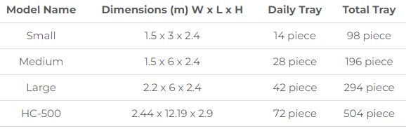 Container types starting from 100 Kg/day up to 500 Kg/day.