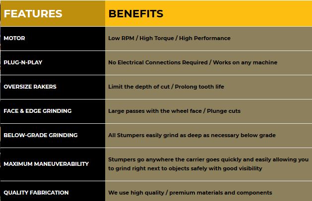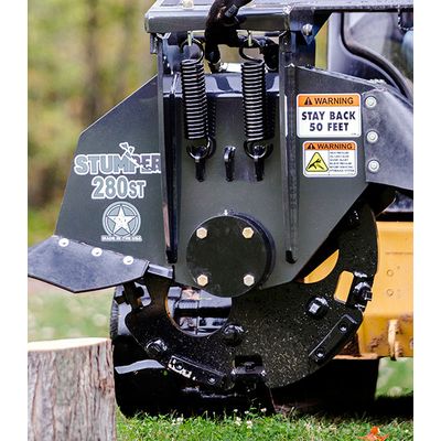 Ideal for almost any piece of equipment you already operate, the Stumper 280 delivers on production with low operational costs. Equipped with a 28" diameter cutting wheel and 13 teeth on a 1" thick wheel, the Stumper 280 gets you an 8" cut per pass. Operate safely and efficiently with a direct drive system with no belts, pulleys, or gear boxes. Avoid electrical connections and auxiliary cylinders with only two grease fittings required.