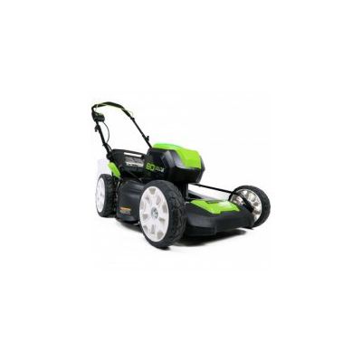 Highest voltage in the industry, 80V Li-Ion offers up to 60 minutes of run time with fully charged 4ah battery. (4AH Battery Sold Separately or With Lawn Mower Model GLM801602). 21-inch steel deck with 3-in-1 design for mulch, side discharge or rear bag capability. Smart Cut™ Technology improves performance and extends run-time. DigiPro™ digital controlled brushless motor for greater efficiency and higher performance. Quiet operation and instant push button start. 7-position single lever hieght adjustment for range of 1-3/8 inch to 3-3/4 inch cut. 8 inch front wheels and 10 inch rear wheels. Handle folds down easily for transportation and storage. Rapid Charge of 30 minutes for 80V 2AH battery and 60 minutes for 80V 4AH battery. Replacement blade model 290342. Compatible battery and charger models GBA80200, GBA80400 and GCH8040. Weight: 62 lbs.