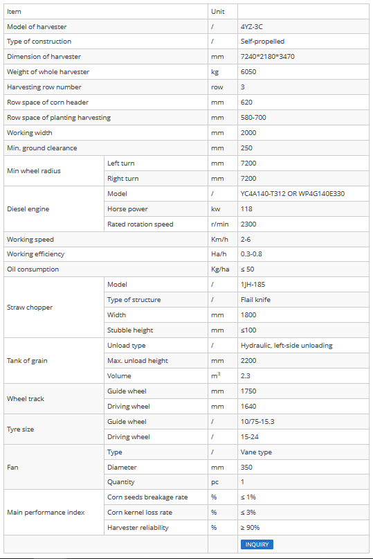 - This corn harvester features an engine with 160/175 horse power, oil efficiency, and high power output.