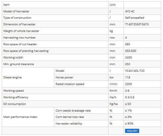 - This corn combine is equipped with a 160/175 horsepower engine, which is oil consumption efficient and offers strong power.