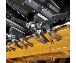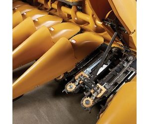 In-cab controls manage header, feederhouse speed*, and deck plate adjustments. Every row unit is protected by an individual ratcheting slip clutch and flexible chain-coupled shafts. All row units used hardened bolt-on knives and rolled-edge deck plates for added durability.