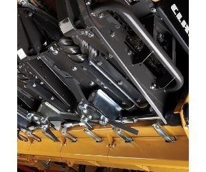 All CLAAS corn heads feature powerful and precise cutting action from its proven parallel “knife-to-knife” stalk roll design. Feeding is gently optimized using tapered gathering chains and advanced poly snouts* to ensure that each ear is picked, keeping material build-up to a minimum.