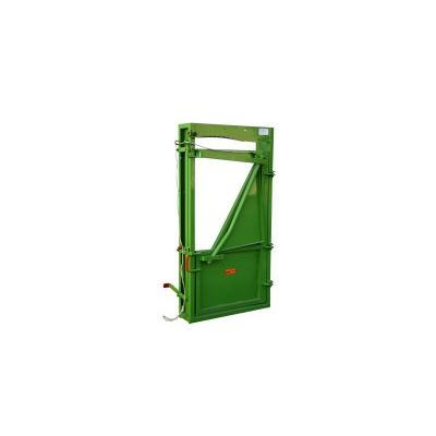 Headgate to be installed at the end of a corridor. Frame in folded sheet. Simple closing of the neck aperture with the rope. Possible to block various sizes of animals. Opening with maneuverable pedal by foot or hand. Product available in paint or galvanized.