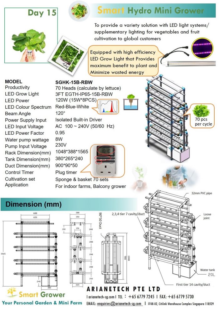 Grow with Smart Hydro Mini Grower — a complete, compact, all-inone hydroponic growing system from ARIANETECH. Ready to use when shipped, start your safe, efficient, and fun growing experience anywhere ! Equipped with 8 PCS of 3.5 Gen.EZYGRO High Efficiency LED Grow Light (worth$432) to provide best light environment for corps.Perfect for restaurants, homes, and offices.Let Smart Hydro Mini Grower puts fresh, healthy vegetables at your fingertips year-round !