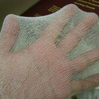 This is Cotton Mussel Socking,  there are two different stitch patterns here 2 x 1 and Full Stitch which refers to the hole sizes like thread count for fabric in a way. This holds mussel seed against some type of growing media ie Fuzzy rope, crop rope etc. The cotton socking holds the seed around the rope until it can attach itself and begin growing on the main supporting media. Eventually the cotton socking will dissolve away and no longer hinder the mussel growth.