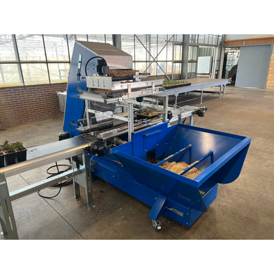 The covering machine is a highly practical solution for applying various types of bark and other top dressing materials. This machine is easy to operate and can be integrated into almost any production line, whether you have a complete processing line or just a potting machine with a conveyor belt.