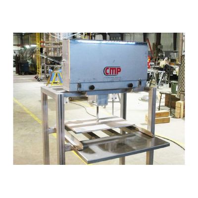 CMP manufactures a Crab Press to remove excess liquid from crab meat. This unit features perforated pans and a pneumatic cylinder press to accomplish this process. Pressed crab is then transferred to plastic packaging. The Crab Press is typically part of our turn-key Salad Meat Line but can be used independently in any fibrous meat extraction process, such as crab and lobster.