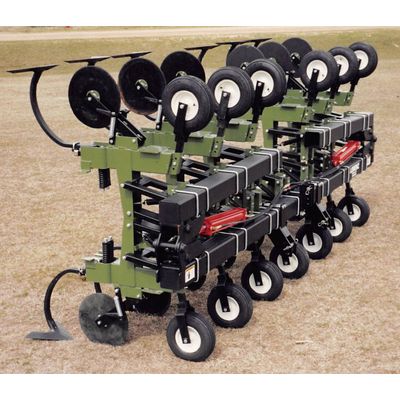 The Total Till 1400 is ideal for No Till, Minimum Till, Ridge Till, and Conventional Till applications. Its user friendly design consists of two adjustable 16 inch cut-away hiller discs, a 20 inch adjustable trash cutting stabilizer, and a 4x16 pneumatic gauge wheel. Gang spacing can easily be adjusted for any row width. The Total Till 1400 cultivator is available in non-folding 2, 4, 6, and 8 row models and folding 8, 12, and 16 row models. Folding models include the hydraulic cylinders and hose lengths to the center of the tool bar. Options include various sweep sizes. Down Pressure Spring. Wing Ridger. Open Top Crop Shields. Lift Assist Wheel Kit. Anhydrous Tan Pull Hitch. Anhydrous Knife Bracket. Slab Deflector.