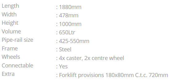 From a hygienic perspective, some growers choose not to throw the leaves on the ground, but to discharge them from the greenhouse immediately. Especially when there is no room under the gutter. To facilitate this method, we designed the de-leafing bin. The bin can be pushed over the pipe-rail system and the cut-off leaves are collected in the bin. When the bin is full, it can be transported in a train or by fork lift out of the greenhouse. The bin can be emptied by tipping it above a waste-container or a compost heap.