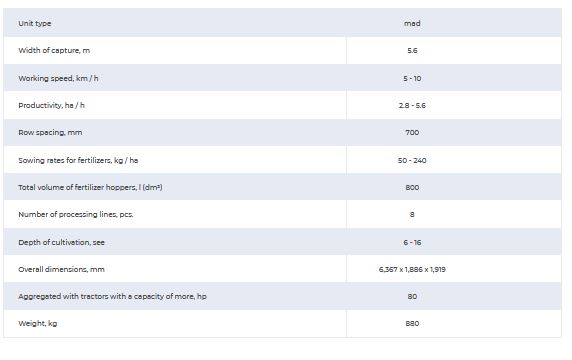 The cultivator ALTAI R-5,6-0" with the basic set of working bodies and the device for introduction of RMD carries out the following operations: