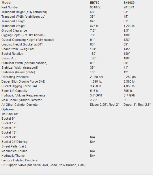 - 9”, 12” (3 teeth), 15”, 18” (4 teeth), 24” (5 teeth) and 24” ditching bucket (no teeth)