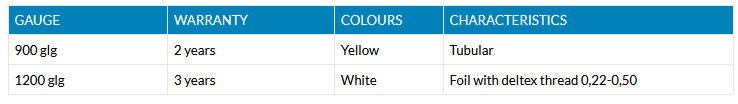 It’s a 1,200-gauge plastic, with 2 or 3-year guarantee, and is especially designed to gather water in greenhouses. Besides, it may be delivered with polyester string, which oers increased resistance.