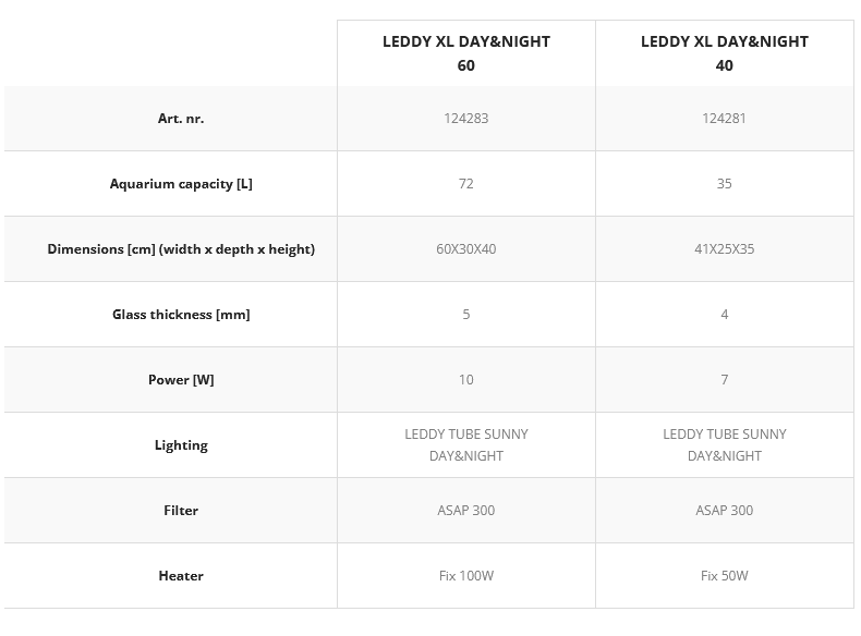 The Leddy XL Set was created for enthusiasts who just want more. The tank is 10 cm higher and has approx. 40% more capacity than the standard Leddy version. Includes lighting, filter and heater.