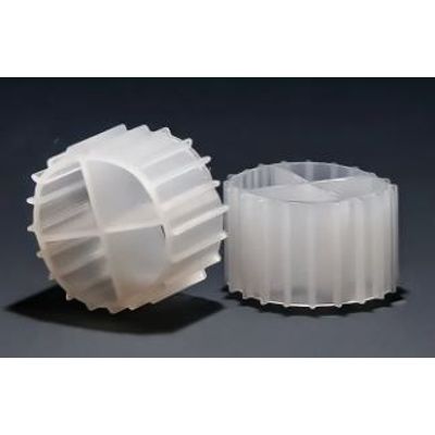 This High-Density Polyethylene (HDPE) Moving Bed Biofilm Reactor (MBBR) media is specifically designed to enhance water quality in recirculating aquaculture systems. It features a unique 4-hole cylindrical design with vertical surface striations that increase the effective surface area. This design is engineered to optimize biofilm attachment, ensuring efficient nutrient diffusion. The media's construction facilitates superior hydrodynamic mixing, which reduces energy consumption while supporting efficient ammonia and nitrite removal - crucial for maintaining water quality in high-density fish farming. The robust and durable structure of the media is built to withstand continuous motion, providing long-term reliability and support for effective water treatment processes. The enhancements in these features are key to improving the sustainability and efficiency of advanced aquaculture practices.