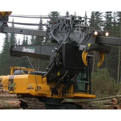 The Denharco telescopic delimber combines the finest elements of our DM4550, with features such as vertical sliding blocks (in lieu of conventional rollers) for extended service life, and minimum tail swing for tighter landings and work areas. Perfect for confined spaces, the DT4550 handles stems with speed and precision. It offers an impressive delimbing reach of over 54’, and feed speed of 14’/sec. Impressive performance in the extreme timber and conditions of North America.