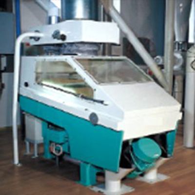 The main purpose of De-stoner is to remove seed sized stones which have not been separated by screening. De-stoner’s works on the principle of difference in density to separate heavy stones from lighter seeds. De-stoner consists of vibratory system with aspiration system works on fluidization principle. Vibratory type mechanism that operates on a vacuum principle, consisting of a steel box frame and sieve slope adjustment. The sieve box is supported on rubber blocks with durable wooden frames, covered with steel screens, aluminium baffles and cleaners. The unit includes a cyclone, air lock and fan and is complete with inspection windows and an adjustable stone separation device.