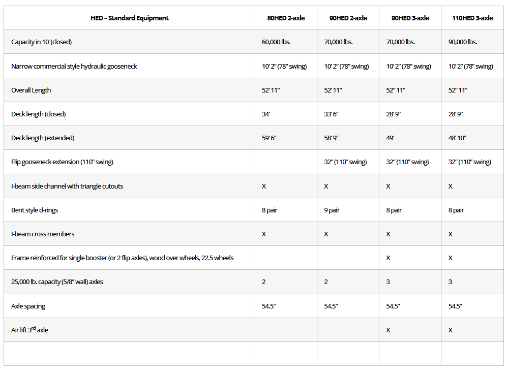 Trail King’s Commercial Detachable Gooseneck Double Drop Extendable trailer comes with the most standard equipment of any trailer of its kind on the market. These trailers are engineered to accommodate four interchangeable gooseneck styles, making this the ultimate trailer for hauling versatility. Additionally, choose from a variety of optional features, including lightweight, corrosion-resistant, aluminum options.