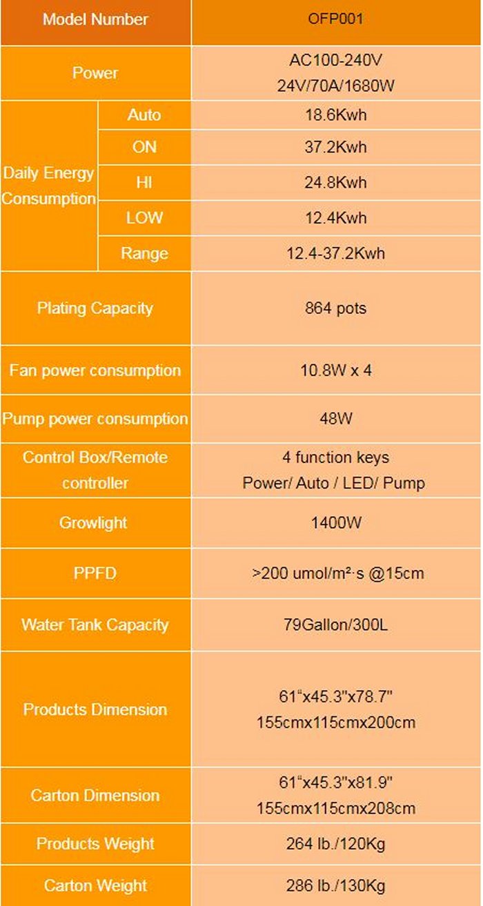 Integrated and Fully Assembled DFT Pallet Farm for Leafy and easy to connect water/electric for green house. 4-layer Planting Capacity up to 864 Lettuce. 1-Auto Grow Mode L, to preset Fan, Pump and Light to match different plants` best stage. Adjustable LED Light through Lift Motor according to the plants` height (optional). Full Spectrum and Dimmable of Blue white , Red, UV and IR. Control through Equipment Button hard key.