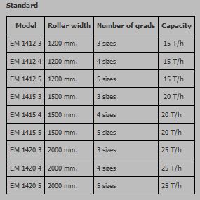 The diameter grader from EKKO Maskiner A/S works with chain driven stainless rollers moving forward with frequency controlled speed. The machine is built up modular, and can be delivered to sorting from 3 to an endless number of sizes.