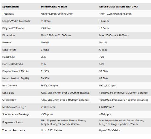Our high haze diffuse glass is the best solution to achieve high efficiency of sunlight use, especially for summer time with very good light conditions. With the special pattern on the glass surface, it scatter the sunlight to cover the greenhouse more evenly, and more importantly can prevent the high temperature on top of crop from burning, wilting during hot summer time. Meanwhile we recommend both sides AR treatment to ensure enough sunlight even during winter time without losing high yield.