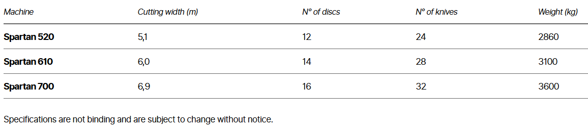 Quick-change knives drastically reduce replacement time, with no tools required. The swathing discs are manufactured with considerable knife overlap, allowing for a perfect cut even when dealing with the thickest, wettest crops.