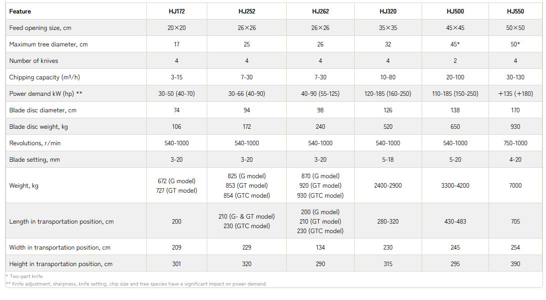 The wide adjustment range of the blades allows the HJ262 to produce larger chips if required. The power consumption of the direct-feed model is about 20% higher than the corresponding diagonal-feed models. Under optimal conditions, the HJ262 can chop up to 30m3 per hour.