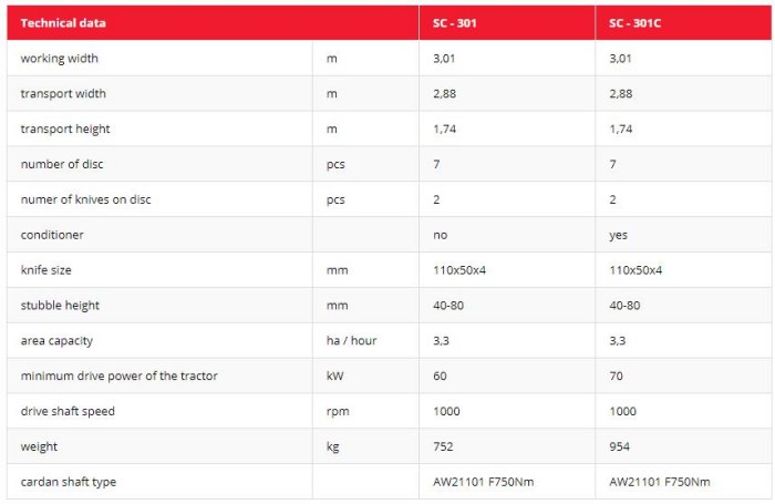 Rozmital - Model SC - 301 / SC – 301C -Disc Mower
