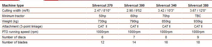 Twose Silvercut - Model 270, 300, 340 and 380 -Disc Mowers