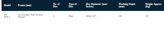 DUROTRAC Disc Ridger consists of heavy duty tubular box frame, hitch system and discs. It is used for making irrigation banks of up to 500 – 600 mm height and 600 – 800 mm width for effective control of flood irrigation or bunds of the size and shape to match crop and soil conditions. The Discs are adjustable along the frame to vary band width and height. Even the disc angle is adjustable.