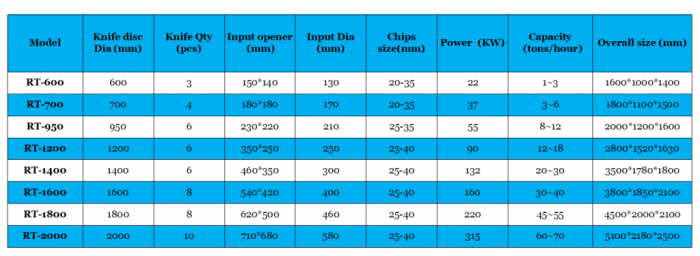 Disc material is wear resistance chrome plated, and special steel material is used for the fly knives, base knives, fly knives bolting, The bigger size Disc Chippers are quipped with both options of hydraulic cylinder operated or manual operated door for knives replacement.