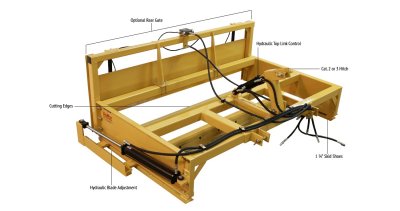 - Hydraulic top link control: Gives you the ability to control the pitch of the grader and the amount of down force all from the seat of your tractor.