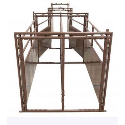 Can be fed out of “Bud Box”, Tub, or just funneled out of an 8’ to 14’ wide alley. 45 and 90 degree sections are adjustable from both sides.