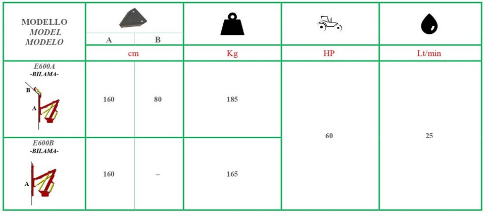 - The upper articulated top can retract next to obstacles (for ex. Rows’ poles). Different optional are available, like root-gatherer and electric control.