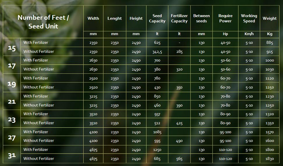 - Each model is available with and without fertilizer.
