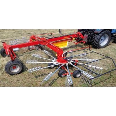 Working width 7.50 mts. and 9.50 mts. Wider version has the 2 rotors hydraulic width adjustment, this implement makes a central row. Easy to maneuver, an original cable steering system guarantees stability in transport and work.