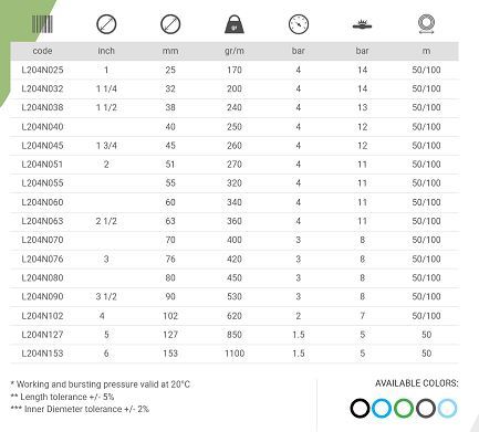 This hose can be used for: 1. Light duty water discharge hose in agriculture, civil engineering construction sites, on tank trucks, boats, ships 2. Water delivery or supply of liquid fertilizers to surface irrigation systems and sprinklers.