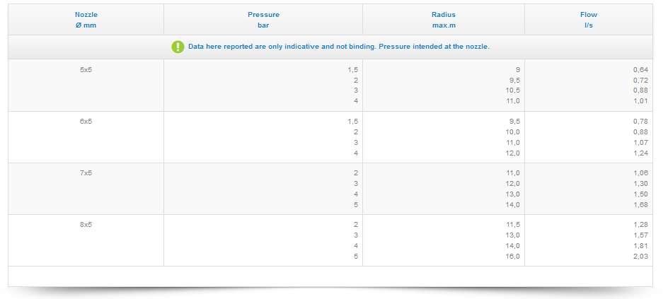 Double nozzle, full circle sprinkler of small capacity with low trajectory angle. Inlet 1` Fem. The low trajectory angle causes a limited maximum height of jet and a smaller coverage radius . This model is so particularly suitable for under-foliage irrigation and for use in windy areas. GT is protected from the effects of UV rays. The moving arm is equipped with an internal high resistence bushing to assure good operation for years